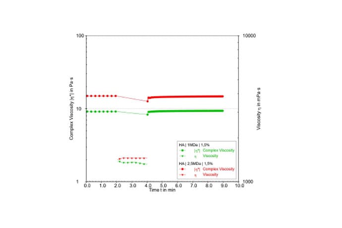 رفتار رئولوژیکی هیالورونیک اسید به شدت وابسته به جرم مولکولی و غلظت آن است؛ بنابراین مثال مناسبی برای بررسی آزمون‌های رئولوژی در صنعت داروسازی محسوب می‌شود.